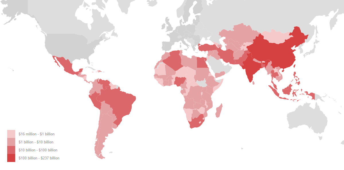 - $134.7 billion in Africa (4.03% of gross domestic product (GDP) in that region),